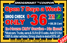 Smog Special: Bring in your SmogTips coupon and get your smog check for ONLY $36.75*. Best value in San Marcos!
